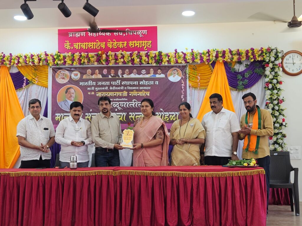 भारतीय जनता पार्टीच्या माध्यमातून विविध क्षेत्रात काम करणाऱ्या मंडळींचा आज शहर मंडलाने सत्कार कार्यक्रम आयोजित केला आहे.या माध्यमातून सर्व मंडळींना भविष्यात अधिक जोमाने काम करण्याची प्रेरणा मिळेल भारतीय जनता पार्टी पक्षाच्या स्थापना दिनानिमित्त सर्वत्र कार्यकर्ते विविध प्रकारचे उपक्रम राबवित आहेत कर्तुत्वानुसार त्या त्या व्यक्तींचा मान सन्मान ठेवण्याचे काम पक्ष सदैव करीत आला आहे पुढील काळात देखील पक्ष वाढीसाठी प्रयत्न करणाऱ्यांचा अधिक जोमाने सन्मान केला जाईल समाजात जनतेसाठी काम करणारे आजचे मान्यवर हे खरे सत्कारमूर्ती आहेत भाजपाची विचारधारा पुढे नेण्याचे काम ही मंडळी करीत आहे सत्कार करून पक्षाने या मंडळींचा आदरच केला आहे असे भाजपाचे दक्षिण रत्नागिरी जिल्हाध्यक्ष प्रशांत यादव यांनी आपल्या भाषणात बोलताना सांगितले.